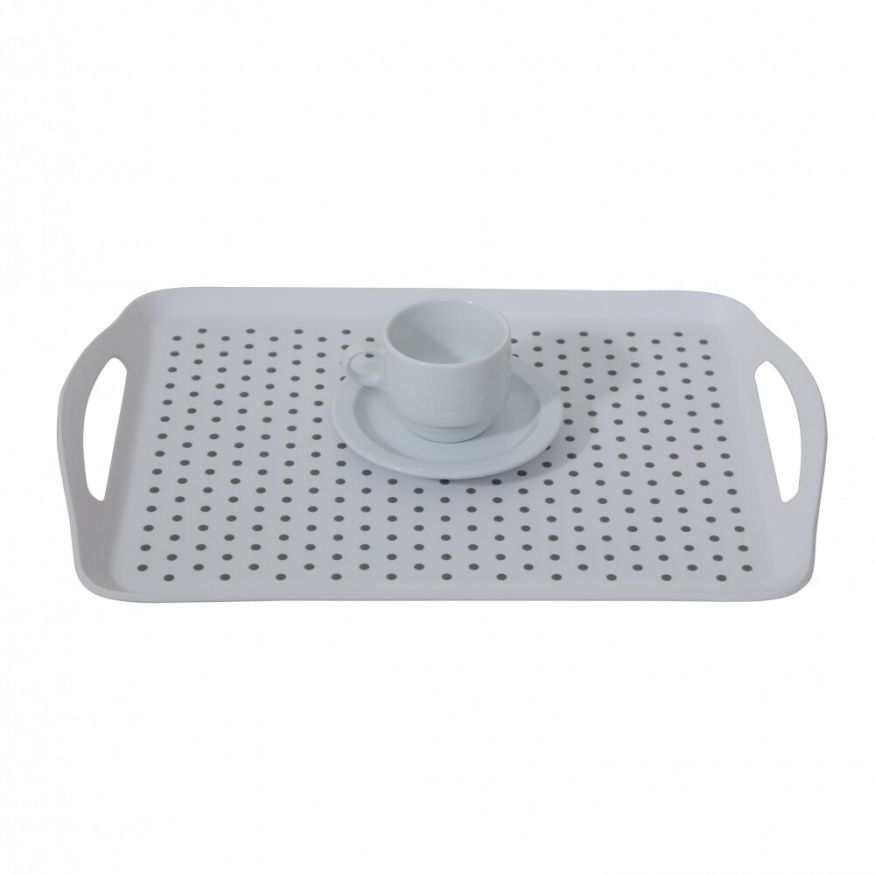 Met de stijlvolle StayPut dienbladen blijven glazen, bestek en borden veilig op hun plek. Het modern vormgegeven blad heeft een extreme anti-grip laag van TPE (thermoplastisch elastomeer) bolletjes die in het blad zijn verwerkt. Ook de onderkant van het dienblad heeft een anti-slip laag. Het dienblad is mat van kleur en is duurzaam. Makkelijk te dragen met de handvaten of te gebruiken als anti-slip blad voor op schoot, wat handig is voor rolstoelgebruikers.