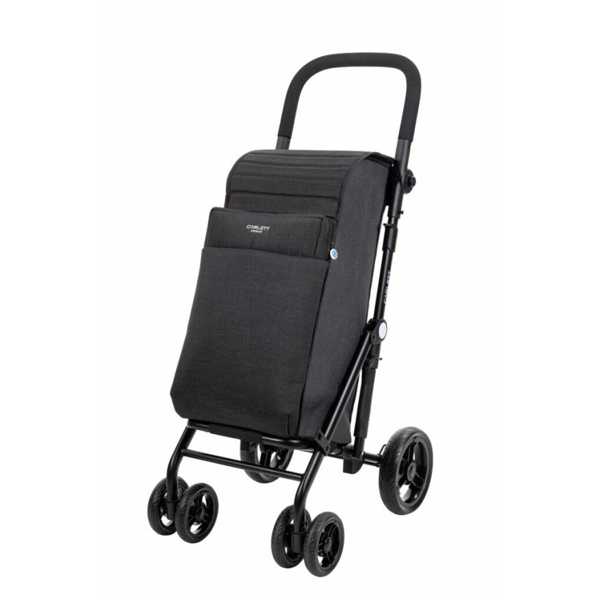 Boodschappentrolly, 4 wielen, Lett 439, zwart. De boodschappentrolly heeft een lichte structuur en de vier wielen zorgen voor een grote mobiliteit.> De trolly heeft een grote afneembare tas met een inhoud van 36 liter en een koeltas van 7,5 liter, ideaal om grote boodschappen in op te bergen.> De tas heeft een kleine zak met ritsopening aan de achterkant.> Met de veiligheidsrem kunt u de wandelwagen op hellingen vastzetten.> Het handvat is op vier posities in te stellen> De boodschappentrolley is makkelijk en compact op te vouwen.> De Lett439 is verkrijgbaar in zwart en rood