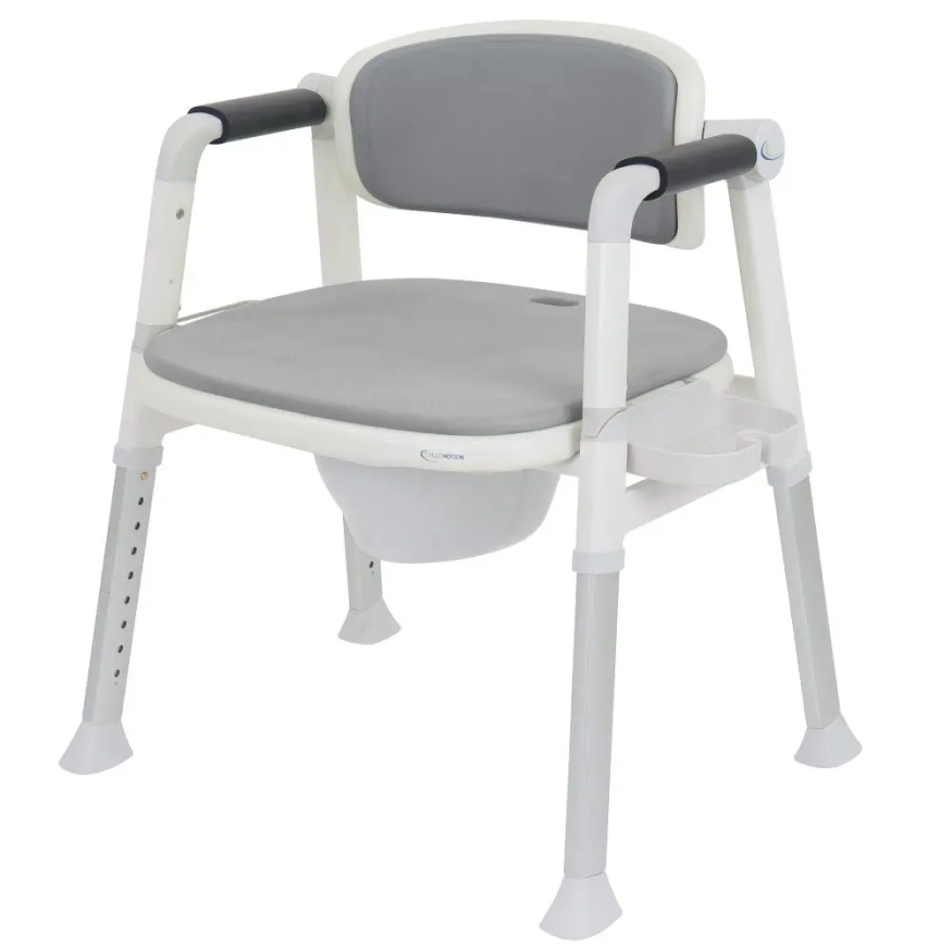 De MultiMotion Commode Douche-/Toiletstoel combineert comfort en functionaliteit in één hulpmiddel. De stoel is geschikt voor gebruik onder de douche, als toiletstoel naast het bed of over een standaard toilet. Dankzij de luxe afwerking, zachte EVA-bekleding en verstelbare zithoogte is deze stoel comfortabel én praktisch in diverse zorgsituaties. Opklapbare armleuningen en antislip poten zorgen voor gebruiksgemak en veiligheid, terwijl accessoires zoals een zeepbakje en toiletrolhouder de stoel compleet maken.
