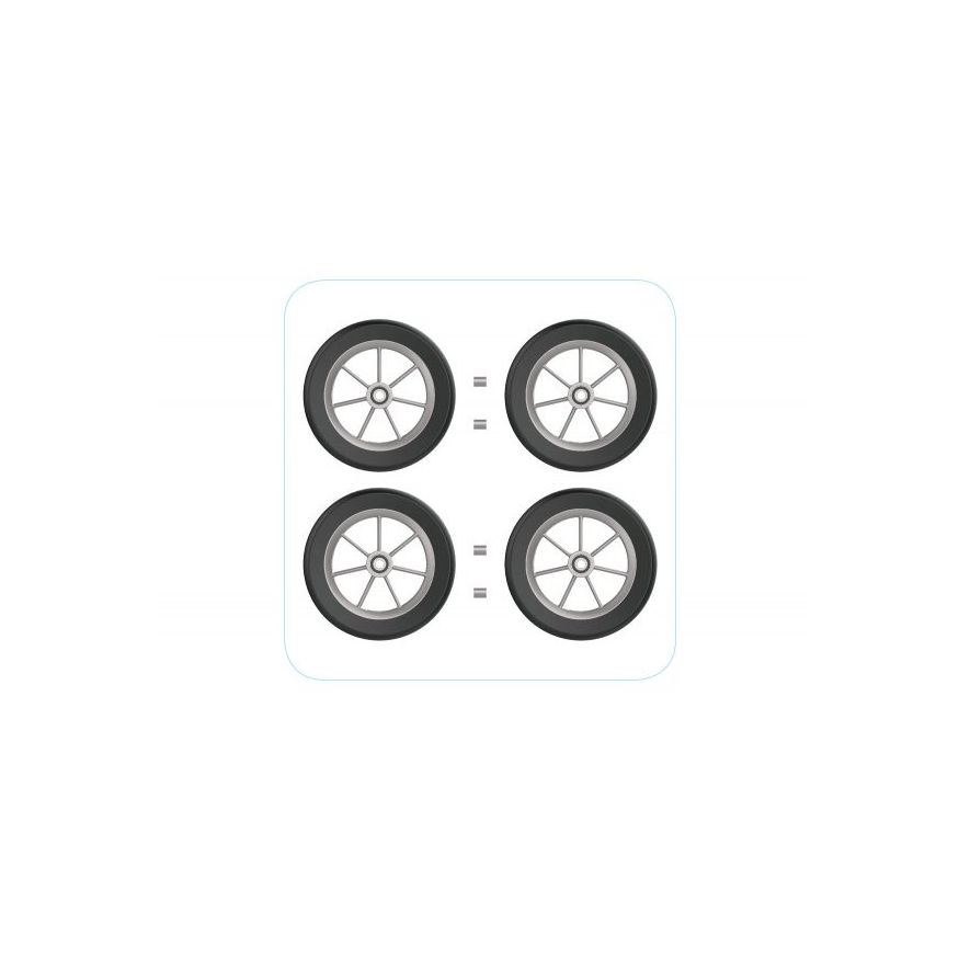 Set van 4, voor- en achterwielen met zilverkleurige spaken en bijpassende afstandsbussen
